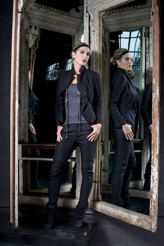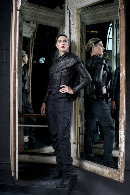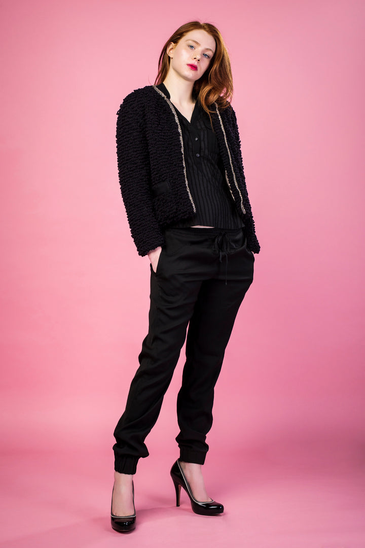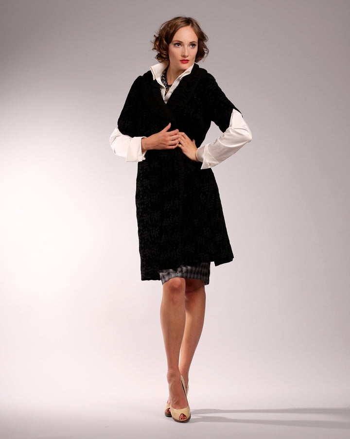 An earthy tribal palette, heavy textured with luxe fabrications such as cashmere burlap & raw edged shearlings.